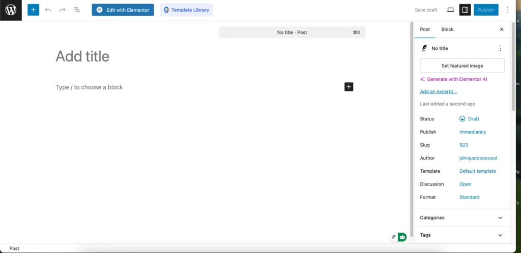 At the top is the Title field. This becomes your blog headline and also influences your URL. Try to make it clear and meaningful. Search engines love a title that understands itself.